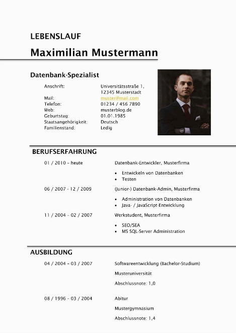 Musterlebenslauf, Vorlagen Lebenlauf - stellenanzeigen.de