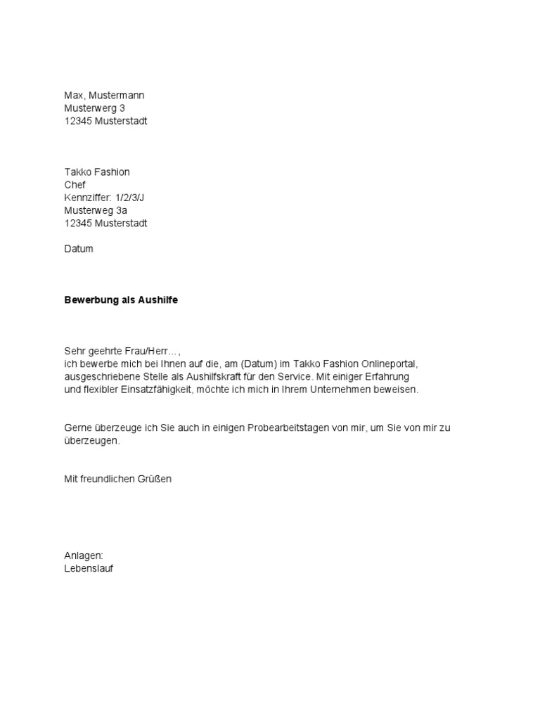 Genial Bewerbung Um Einen Minijob Auf 400€ Basis ...