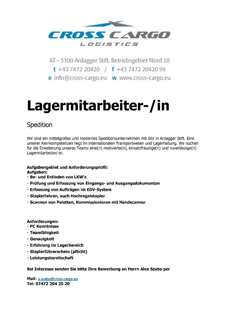 Komplex 20+ Bewerbung, Lagermitarbeiter, Yes7Tripbusiness ...
