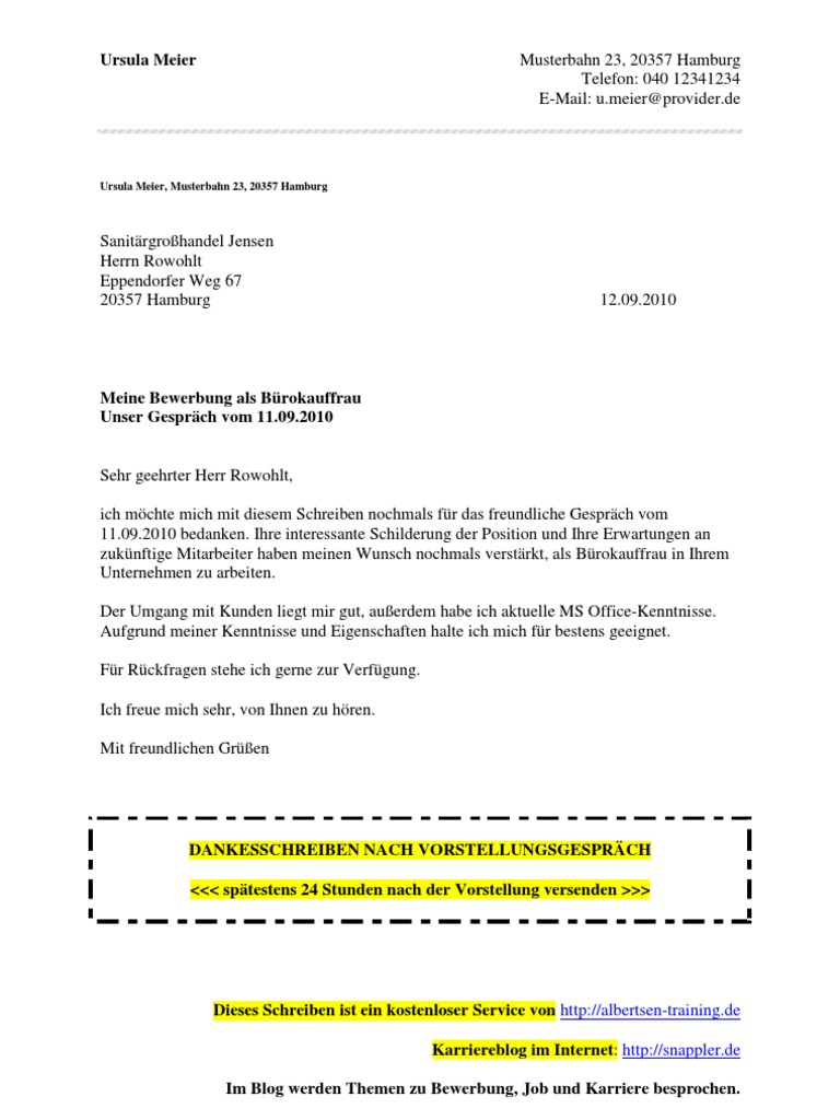 Dankesschreiben nach Vorstellungsgespräch (Vorlage)