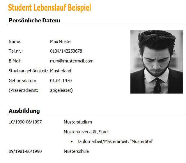Lebenslauf Foto Beispiel