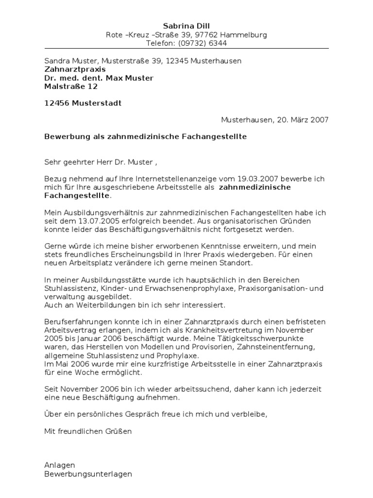 Bewerbung zahnmedizinische fachangestellte muster ...